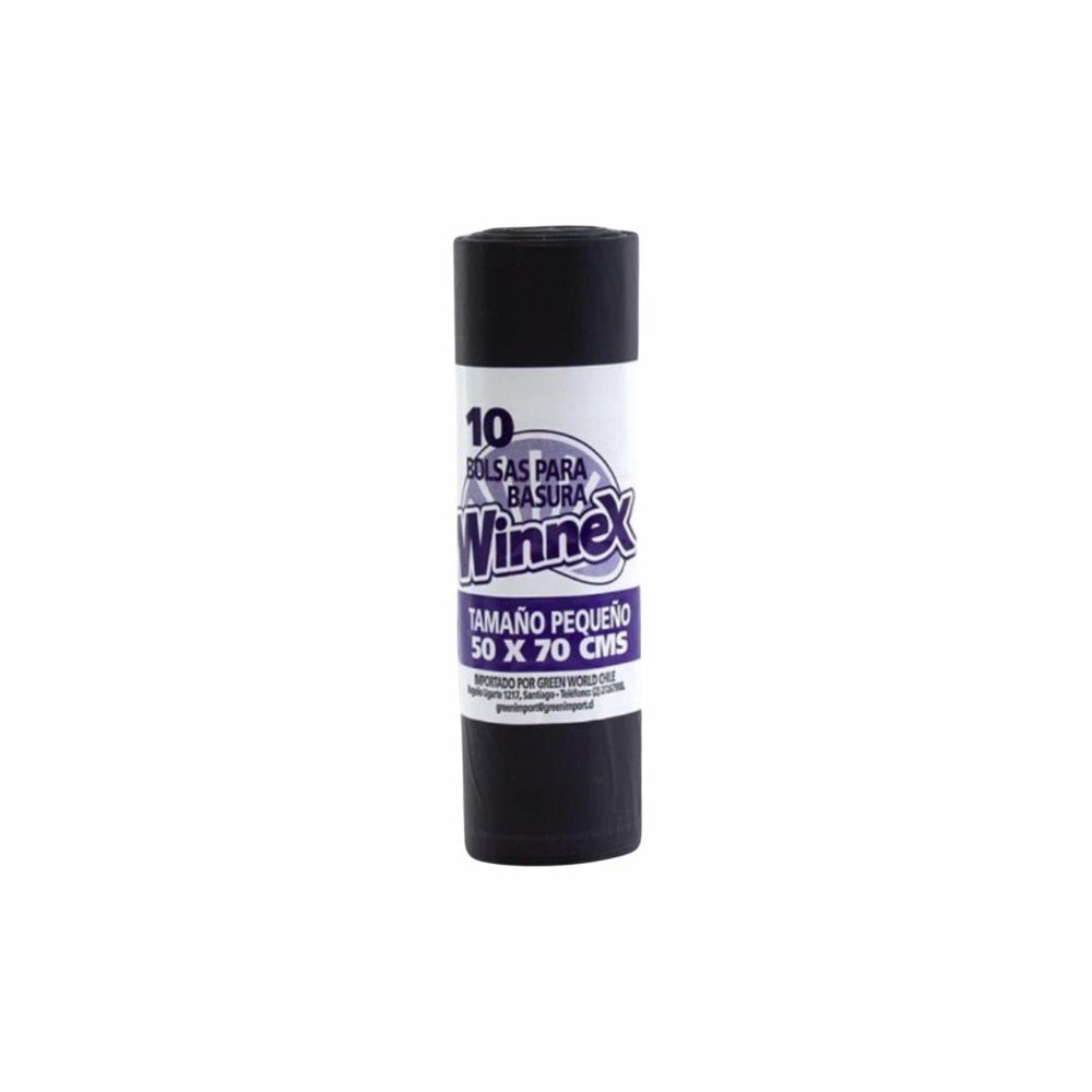 Bolsa de basura marca Winnex, fabricada en material resistente para uso domestico e institucional. Apta para residuos livianos. Formato 50×70 cm. Paquete de 10 unidades
